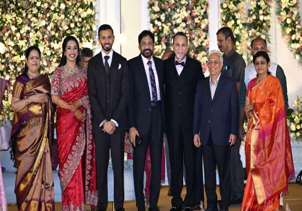 தினமலர் நாளிதழ் கோவை பதிப்பு வெளியீட்டாளர் எல்.ஆதிமூலம் -- சுதா ஆதிமூலம் தம்பதியின் மகள் திருமணம் சென்னையில் (ஜூன்-8) விமர்சையாக நடந்தது. மணமக்களை வாழ்த்திய வேலம்மாள் கல்வி அறக்கட்டளையின் தலைமை நிர்வாகி வேல்முருகன்,
