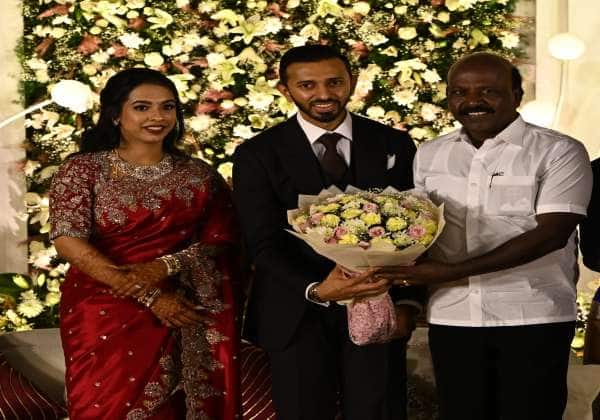 மணமக்களை வாழ்த்திய எஸ்.ஆர்.எம்., பல்கலை., சேர்க்கை பிரிவு இயக்குநர் கதிரவன்,
