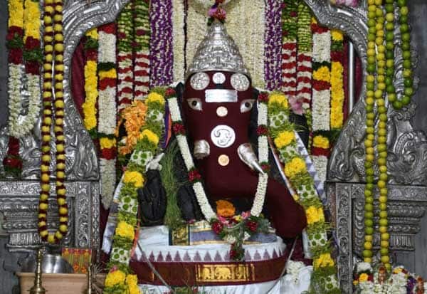 விநாயகர் சதுர்த்தியை யொட்டி, சிறப்பு அலங்காரத்தில் பக்தர்களுக்கு பாலித்த மணக்குள விநாயகர். இடம்: புதுச்சேரி
