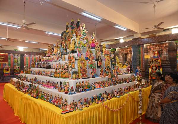 நவராத்திரி விழாவை முன்னிட்டு இந்து அறநிலை துறை சார்பில் மயிலாப்பூர் கபாலீஸ்வரர் கோவில் மண்டபத்தில் ஏற்பாடு செய்யப்பட்டிருந்த சிறப்பு கொலு அலங்காரங்களை ஆர்வத்துடன் பார்வையிட்ட மக்கள்