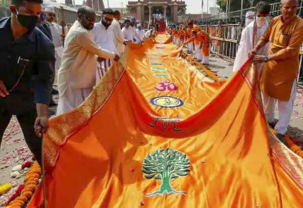 அயோத்தி ராமர் கோவிலில் பிரதமர் மோடி ஏற்றி வைத்த பிரமாண்ட காவிக்கொடி.
