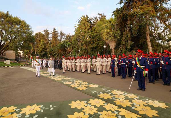 எத்தியோப்பியா தலைநகர் அடிஸ் அபாபாவில் உள்ள தேசிய பூங்காவில் பிரதமர் மோடிக்கு அளிக்கப்பட்ட வரவேற்பு