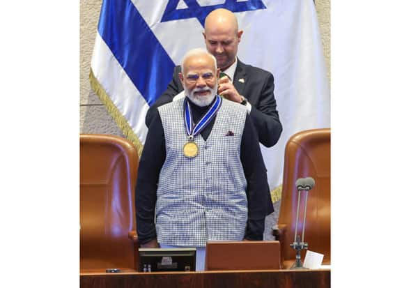 இஸ்ரேல் பார்லிமென்டின் உயிரிய விருது பிரதமர் மோடிக்கு வழங்கப்பட்டது.