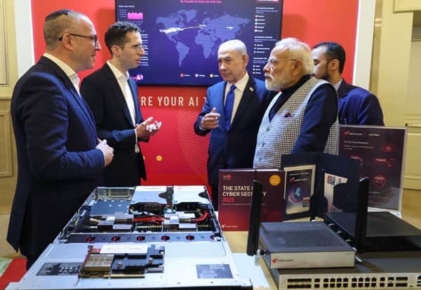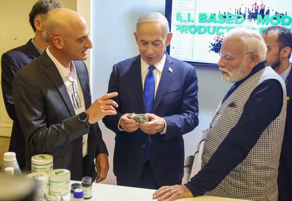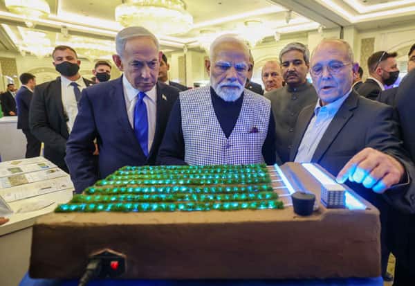 இஸ்ரேலின் டெல் அவிவ் நகரில் நடக்கும் தொழில்நுட்ப கண்காட்சியை அந்நாட்டு பிரதமர் பெஞ்சிமின் நெதன்யாகு உடன் பார்வையிட்ட பிரதமர் மோடி.
