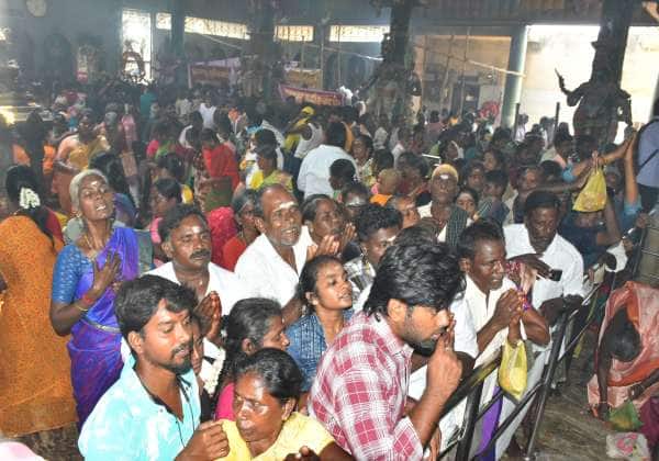 பங்குனி உத்திரத்தையொட்டி விருத்தாசலம் மணவாளநல்லூர் கொளஞ்சியப்பர் கோவிலில் முருகப்பெருமானுக்கு தரிசனம் செய்த பக்தர்கள் கூட்டத்தின் ஒரு பகுதி.