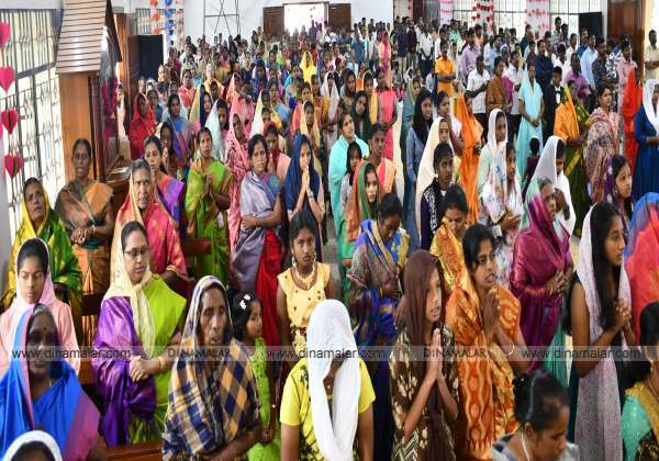 திருப்பூர், குமார் நகர், புனித சூசையப்பர் ஆலையத்தில் புத்தாண்டை முன்னிட்டு சிறப்பு ஆராதனை நடந்தது.