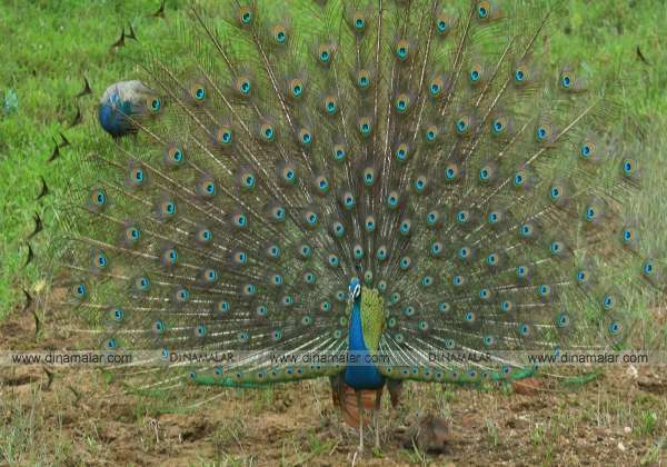 திருநெல்வேலி கருப்பன்துறை பகுதியில் மழையை எதிர்பார்த்து தன் அழகிய தோகையை விரித்து ஆடும் மயில்.