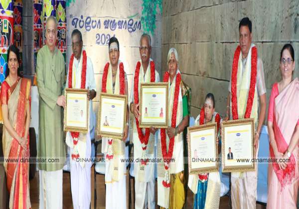 கோவை கிக்கானி பள்ளியில் ஸ்ரீ கிருஷ்ணா ஸ்வீட்ஸ் சார்பில் துவங்கிய எப்போ வருவாரோ 2024 ஆன்மீக சொற்பொழிவு நிகழ்ச்சியில் ஆன்மீக தொண்டாற்றும் இறை அன்பர்களுக்கு அருள் வளர்செம்மல் விருது வழங்கப்பட்டது. இதில் திருமூர்த்தி, பவானி தியாகராசன், தாமோதரன், சாவித்திரி தாமோதரன், தனம், ராதாகிருஷ்ணன் ஆகியோருக்கு ஸ்ரீ கிருஷ்ணா ஸ்வீட்ஸ் நிர்வாக இயக்குனர் கிருஷ்ணன் விருதுகளை வழங்கினார். அருகில் பேச்சாளர் பாரதி பாஸ்கர், அரசு மருத்துவமனை டீன் நிர்மலா உள்ளிட்டோர்.