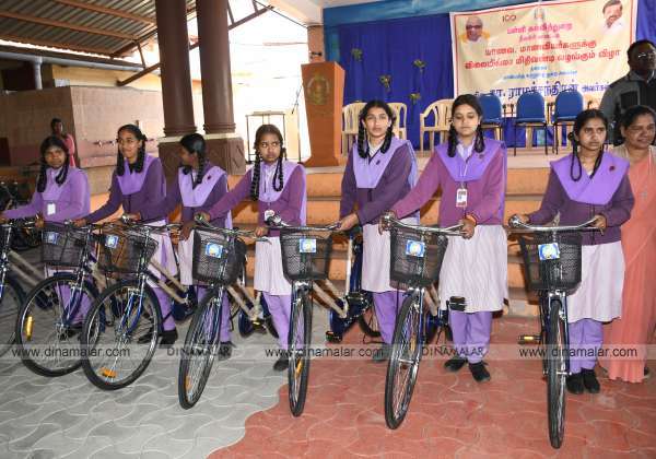 ஊட்டி பெத்தலகேம் பள்ளியில், நடந்த நிகழ்ச்சியில் அரசின் விலையில்லா சைக்கிளை பெற்ற மாணவிகள்.