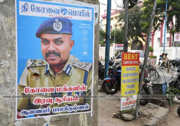 மீண்டும் கோவையில் தலை தூக்கும் போஸ்டர் ஒட்டும் பழக்கம்.இடம்: போலீஸ் கமிஷனர் அலுவலகம் எதிரே.