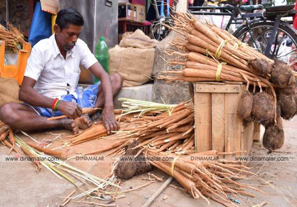பொங்கல் பண்டிகையை முன்னிட்டு விற்பனைக்காக வந்துள்ள பனங்கிழங்கு.இடம்: ஸ்ரீவில்லிபுத்தூர்.விருதுநகர் மாவட்டம்