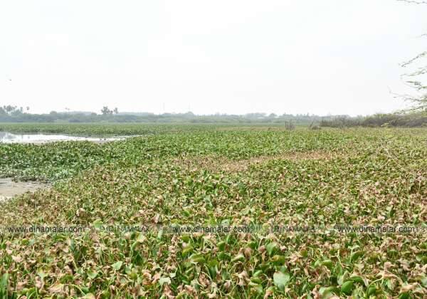திருப்பூர், நஞ்சராயன் குளத்தில் ஆகாய தாமரை படர்ந்து காணப்படுகிறது.