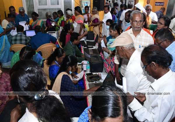 மக்களுடன் முதல்வர் திட்டத்தின் கீழ் தாம்பரம் மாநகராட்சி சார்பில் இரண்டாவது நாளாக பம்மல் பகுதியில் நடந்த முகாமில் பல்வேறு கோரிக்கைகளுக்கு தீர்வு காணும் விதமாக மனுக்கள் பெறப்பட்டன. இடம் : பம்மல் .