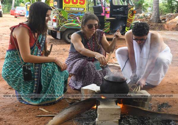 தூத்துக்குடி மாவட்டம் சாயர்புரம் பகுதிக்கு சுற்றுலா வந்த வெளிநாட்டு சுற்றுலாப் பயணியர்கள் நமது பாரம்பரிய உடையணிந்து பொங்கல் விழா கொண்டாடி மகிழ்ந்தனர்.
