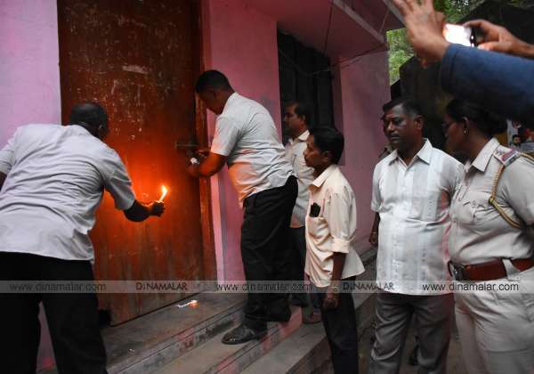 திண்டிவனம் நேரு வீதியில் உள்ள பழைய கோர்ட் நூலக கட்டடம் போலீஸ் பாதுகாப்புடன் சீல் வைக்கப்பட்டது.