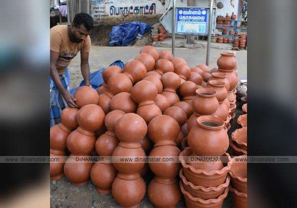 விழுப்புரம் சாலை அகரத்தில் பொங்கல் பண்டிகை முன்னிட்டு மண்பானைகள் விற்பனைக்கு தயாராக உள்ளது.