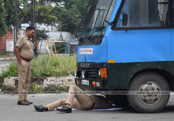 பாதுகாப்பும் மட்டும் இல்லை, சாலையில் படுத்து பழுது பார்க்கவும் இந்த போலீஸ்காரருக்கு தெரியும். இடம்: கோவை, தெற்கு தாலுக்க அலுவலகம் அருகே