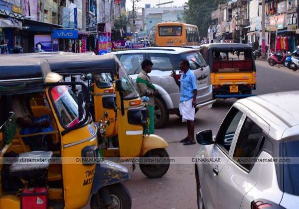 சிவகங்கை தெற்கு ராஜ வீதி வாகனங்களை ரோட்டில் நிறுத்துவதால் போக்குவரத்து இடையூறாக உள்ளது.