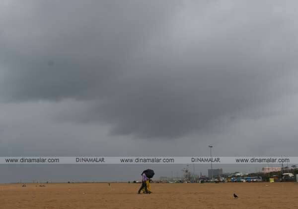 சென்னையில் வானிலை மாற்றம் அடைந்து கரு மேகங்களுடன் லேசான சாரல் மழை பெய்தது. இடம் : மெரினா கடற்கரை.