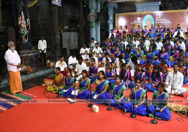 இந்து சமய அறநிலையத்துறை சார்பில் நடைபெற்ற தமிழக இசை மற்றும் கவின் கலை பல்கலைகழக மாணவர்கள் திருப்பாவை பாராயணம் நிகழ்ச்சி பார்த்தசாரதி கோவிலில் நடந்தது. இதனை துவக்கி வைத்து பார்வையிட்ட இந்து சமய அறநிலையத்துறை அமைச்சர் சேகர் பாபு. இடம் : திருவல்லிக்கேணி.