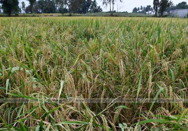 திண்டுக்கல் அருகே முத்தனம்பட்டி பகுதியில் விளைந்துள்ள நெல்மணிகள்.