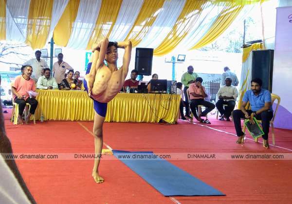 புதுச்சேரி கடற்கரை சாலையில் சுற்றுலாத்துறை சார்பில் 27வது அகில இந்திய யோகாசனப் போட்டியில் மாணவர்கள் தன் திறமையை வெளிப்படுத்தினர்.