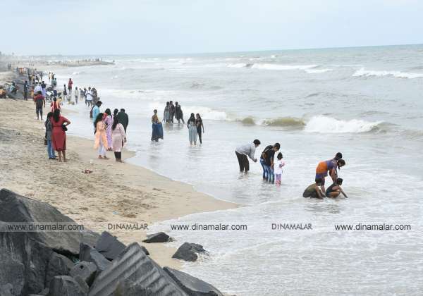 புதுச்சேரியில் ஆபத்தை உணராமல் கடற்கரையில் சுற்றுலா பயணிகள் மற்றும் உள்ளூர் மக்கள் குளித்தனர்.