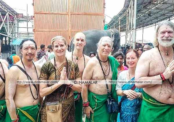 திருச்செந்தூரில் வெளிநாட்டை சேர்ந்த பக்தர்கள் மாலை அணிந்து கடலிலும் நாழிக்கிணற்றிலும் நீராடி சுவாமி தரிசனம் செய்தனர்.