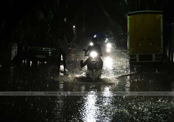 சென்னையில் காலை முதல் இரவு வரை பெய்த மழையால் தெருக்களில் தேங்கி நிற்கும் மழைநீர்.இடம் : திருவான்மியூர்.