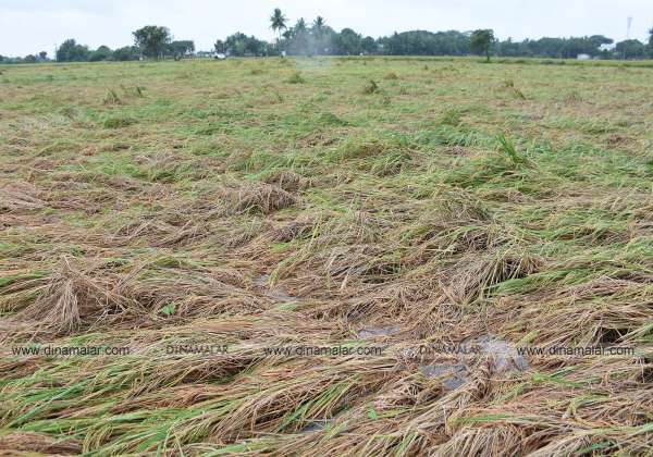 விழுப்புரம் அடுத்த பெரும்பாக்கம் பகுதியில் மழை பெய்து வருவதால் அறுவடைக்கு தயாரான நெல் பயிர்கள் சேதமானது.