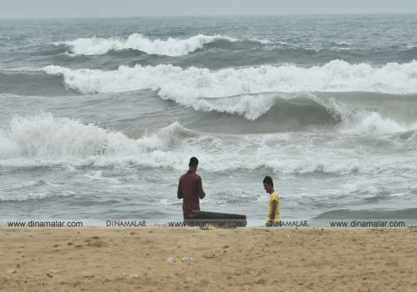சென்னை மெரினா கடற்கரை வழக்கத்திற்கு மாறாக கடல் சீற்றத்துடன் காணப்பட்டது.