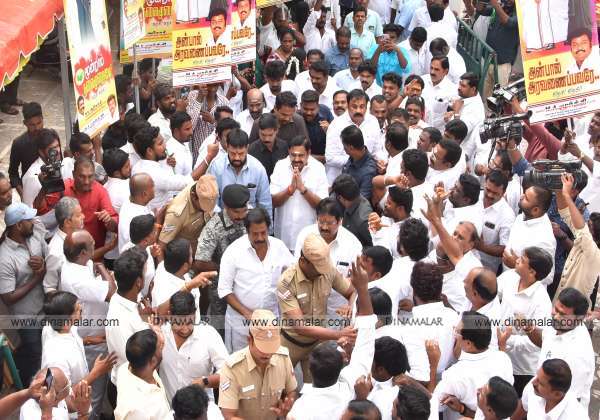 சென்னை ராயப்பேட்டை அ.தி.மு.க., தலைமை அலுவலகத்தில் நடக்கும் மாவட்ட செயலாளர் கூட்டத்திற்கு வந்த பொதுச்செயலாளர் இபிஎஸ்.,