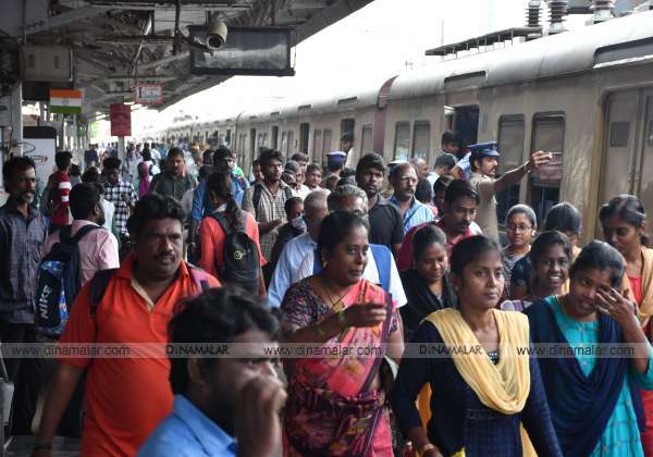 திருவள்ளூர் அரசு பஸ் தொழிற்சங்கங்கள் வேலை நிறுத்தத்தால் திருவள்ளூர் ரயில் நிலையத்தில் நிரம்பி வழியும் ரயில் பயணிகள்