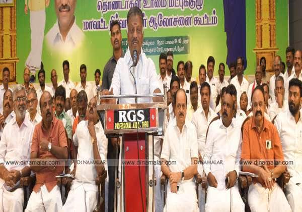 தேனி அருகே மதுராபுரியில் நடந்த அ.தி.மு.க., தொண்டர்கள் உரிமை மீட்புகுழு மாவட்ட நிர்வாகிகள் ஆலோசனை கூட்டத்தில் முன்னாள் முதல்வர் பன்னீர்செல்வம் பேசினார், வலமிருந்து எம்.பி., ரவீந்திரநாத், கொள்கை பரப்பு செயலாளர் புகழேந்தி, துணை ஒருங்கிணைப்பாளர்கள் மனோஜ் பாண்டியன், பிரபாகர், இணை ஒருங்கிணைப்பாளர் வைத்தியலிங்கம், கொள்கை பரப்பு செயலாளர் மருது அழகுராஜ், முன்னாள் அமைச்சர் நடராஜன்,