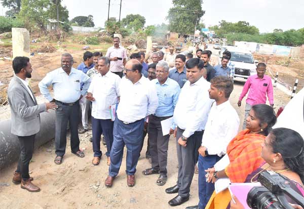 நெல்லை மாவட்டம், கருப்பந்துறையில் தாமிரபரணி ஆற்று தரைப்பாலம் வெள்ளத்தால் சேதமுற்ற பகுதியை மத்திய குழுவினர் பார்வையிட்டனர்.