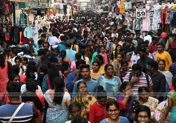 பொங்கல் பண்டிகையை முன்னிட்டு பொருட்கள் புத்தாடைகள் வாங்க ரங்கநாதன் தெருவில் குவிந்த பொதுமக்கள் கூட்டம்.இடம் : தி நகர்.