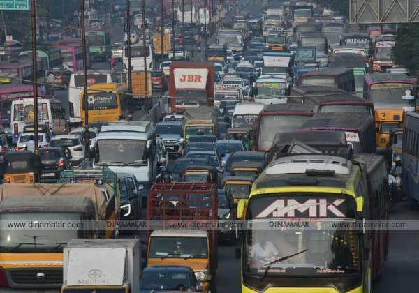 தாம்பரம் ஜி.எஸ்.டி., சாலையில் மாலை ஏற்பட்ட போக்குவரத்து நெரிசல்