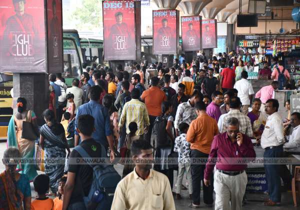 பொங்கல் பண்டிகையை முன்னிட்டு, சென்னை கோயம்பேடு பேருந்து நிலையத்திலிருந்து, தங்கள் சொந்த ஊர்களுக்கு செல்ல குவிந்த மக்கள் கூட்டம்