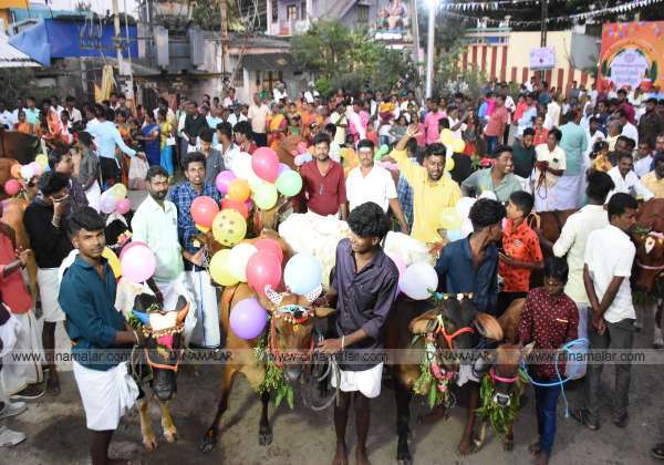 மாட்டுப் பொங்கலை முன்னிட்டு விழுப்புரம் மருதூர் வடபத்திர காளியம்மன் கோவிலில் முன்பு மஞ்சு விரட்டும் நிகழ்ச்சி நடந்தது.