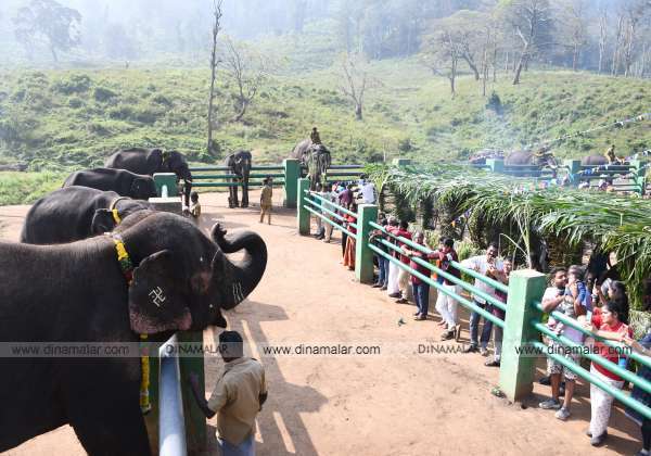 பொள்ளாச்சி அருகே டாப்சிலிப் கோழிகமுத்தி யானைகள் வளர்ப்பு முகாமில், யானை பொங்கல் விழா கொண்டாடப்பட்டது.