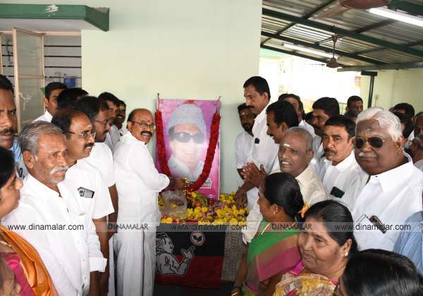முன்னாள் முதல்வர் எம்.ஜி.ஆர்., பிறந்தநாளை முன்னிட்டு, அவரது உருவப்படத்திற்கு மலர் தூவி மரியாதை செலுத்திய எம்.எல்.ஏ., பொள்ளாச்சி ஜெயராமன் மற்றும் அ.தி.மு.க.,வினர்.