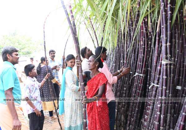 உடுமலை சோமவாரப்பட்டி ஆல்கொண்டமால்.கோவில் திருவிழாவையொட்டி சுவாமியை தரிசித்துவிட்டு கரும்புகளை வாங்கி செல்லும் பக்தர்கள்,