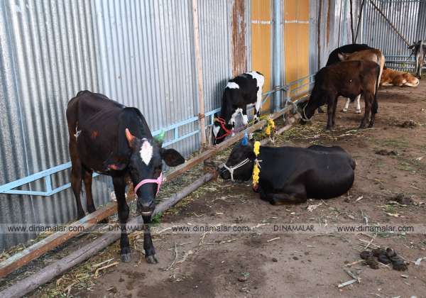 உடுமலை சோமவாரப்பட்டி ஆல் கொண்டமால் கோவில் திருவிழாவையொட்டி பக்தர்கள் தானமாக வழங்கிய கன்றுகள்.