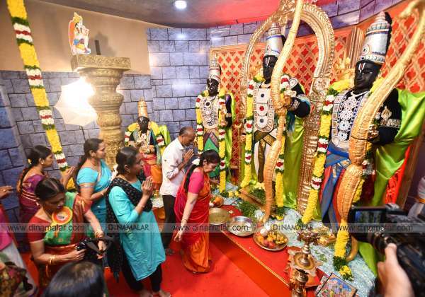 அயோத்தி ராமர் கோவில் கும்பாபிஷேகத்தை முன்னிட்டு, விருகம்பாக்கம் மூகாம்பிகை நகரில், ராமர், சீதா, லட்சுமணன் , ஆஞ்சநேயர் சிலைகளை அமைத்து அப்பகுதி மக்கள் வழிபட்டனர்.