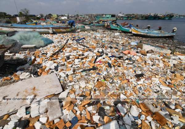 சென்னை காசிமேடு மீன்பிடி துறைமுகத்தில் பிளாஸ்டிக் குப்பைகள் நிறைந்து காணப்படுகிறது.