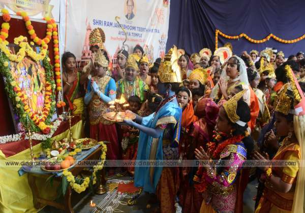 அயோத்தியில் நடக்கும் ராமர் கோவில் கும்பாபிஷேகத்தை முன்னிட்டு, கொளத்தூர் ஜெய கோபால் கரோடியா பள்ளி மாணவர்கள், ராமர் , சீதை, ஆஞ்சநேயர் வேடங்கள் அணிந்து சிறப்பு வழிபாடு நடத்தினர்.