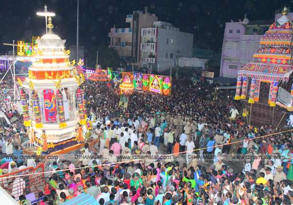 தைப்பூச விழாவை முன்னிட்டு பழநி பெரியநாயகியம்மன் கோயிலில் வெள்ளி தேரோட்டம் நடந்தது.