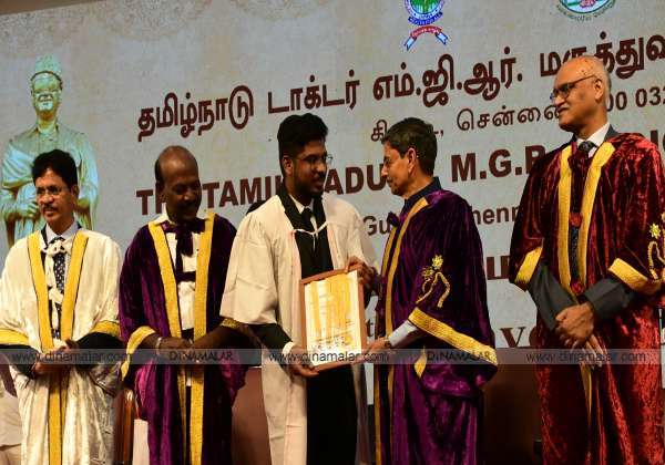 சென்னை ,கிண்டியில் உள்ள டாக்டர் எம்.ஜி.ஆர்., மருத்துவ பல்கலை கழகத்தின் 36வது பட்டமளிப்பு விழாவில், கவர்னர் ரவி மாணவ மாணவிகளுக்கு பட்டம் மற்றும் புத்தக்கங்களை வழங்கினார். இடம் : கிண்டி .