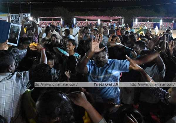 கரூர் மாவட்ட ஆயுதப்படை மைதானத்தில் புத்தாண்டு பொங்கல் விழா கவாத்து நிறைவு விழாவில் சக போலீசார் குடும்பத்துடன் ஆட்டமாடி மகிழ்ந்த எஸ் பி பிரபாகரன்.