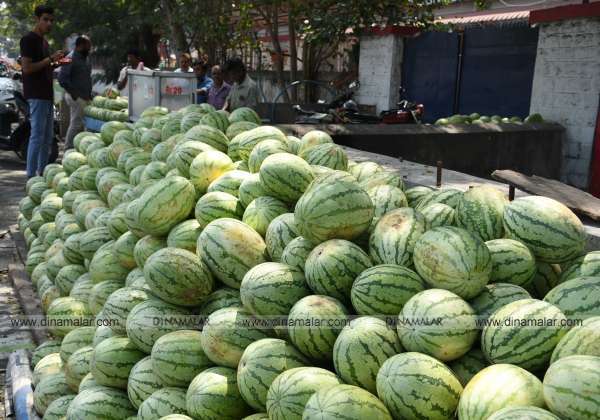 விற்பனைக்கு வந்துள்ள தர்பூசணி பழங்கள். இடம்: தலைமை அஞ்சலகம் அலுவலகம் அருகே, கோவை